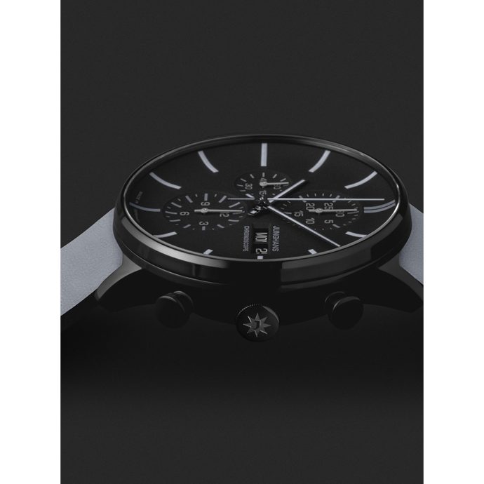 Klare Formen und eine ausdrucksstarke Farbgebung sind die Merkmale der FORM A Chronoscope. Das Zusammenspiel von matten und polierten Flächen in tiefem Schwarz erzeugen eine spannungsvolle Dynamik. Die Akzente in Gelb, Grau oder Orange sind von einem Kunstwerk des britischen Künstlers Richard Macneil inspiriert, das sich als farblich adaptierter Glashinterdruck auf dem Gehäuseboden wiederfindet. Der mechanische Chronograph ist mit einem flachem Saphirglas ausgestattet und bis 5 bar wasserdicht.